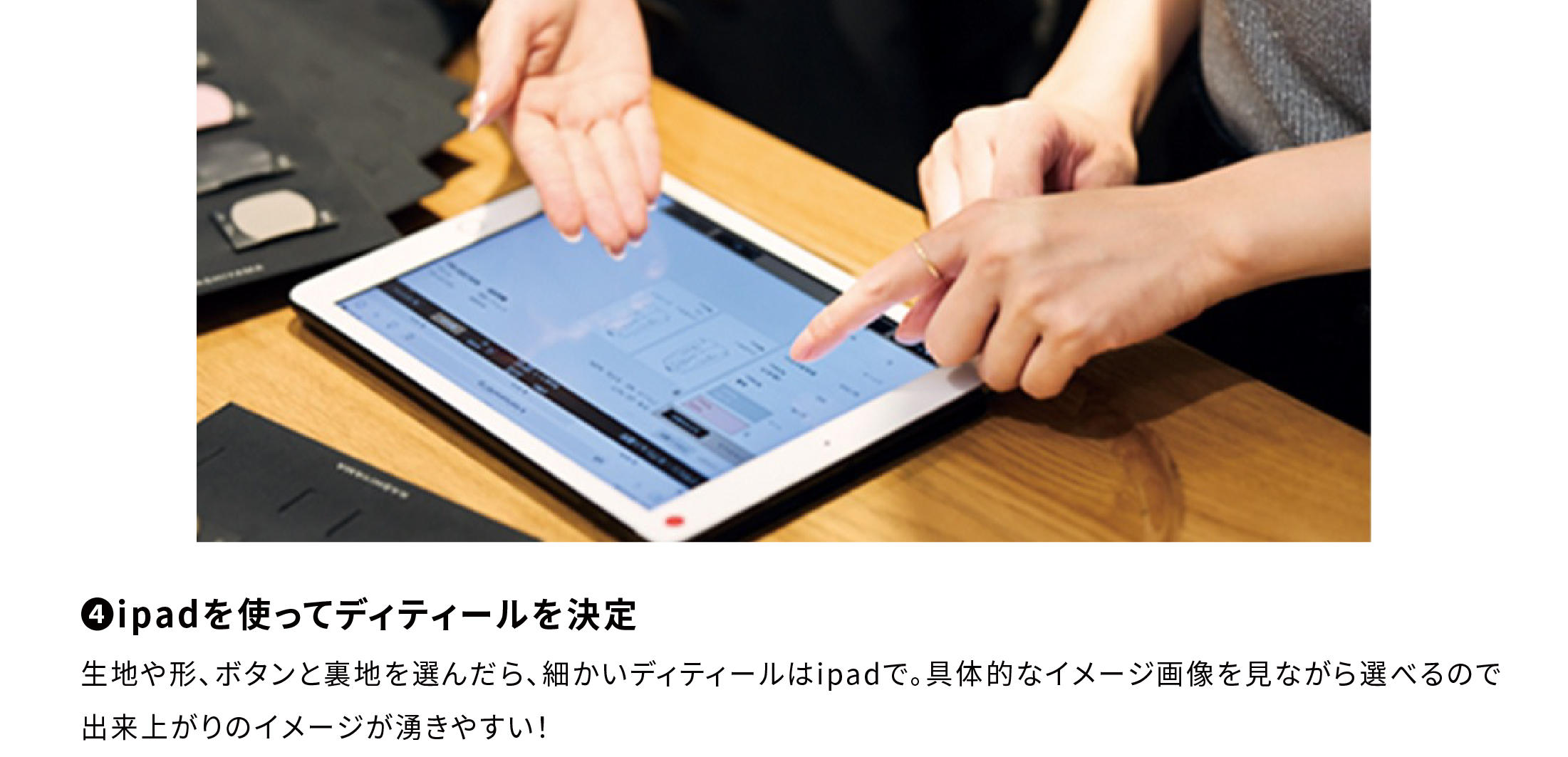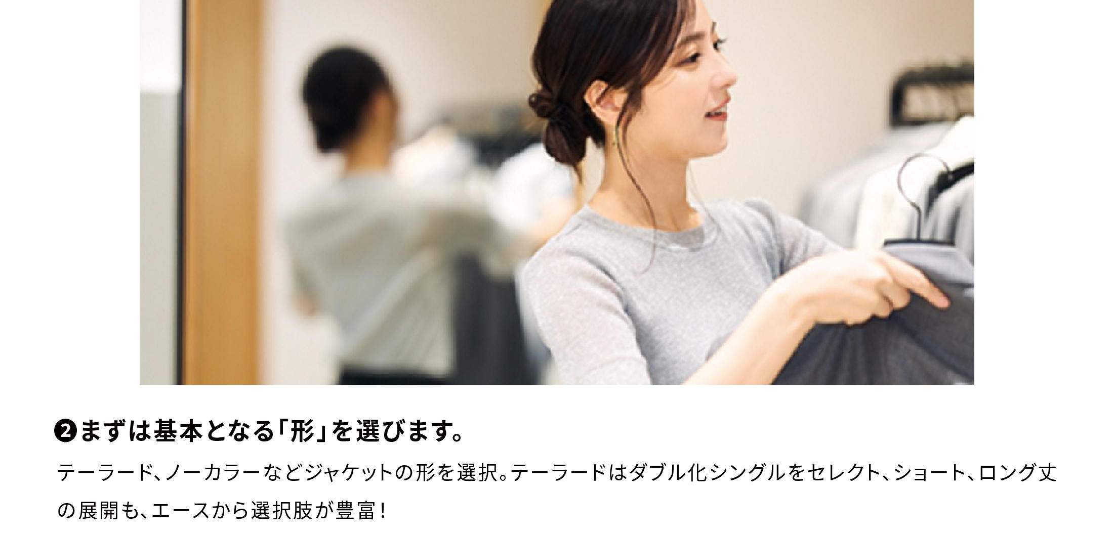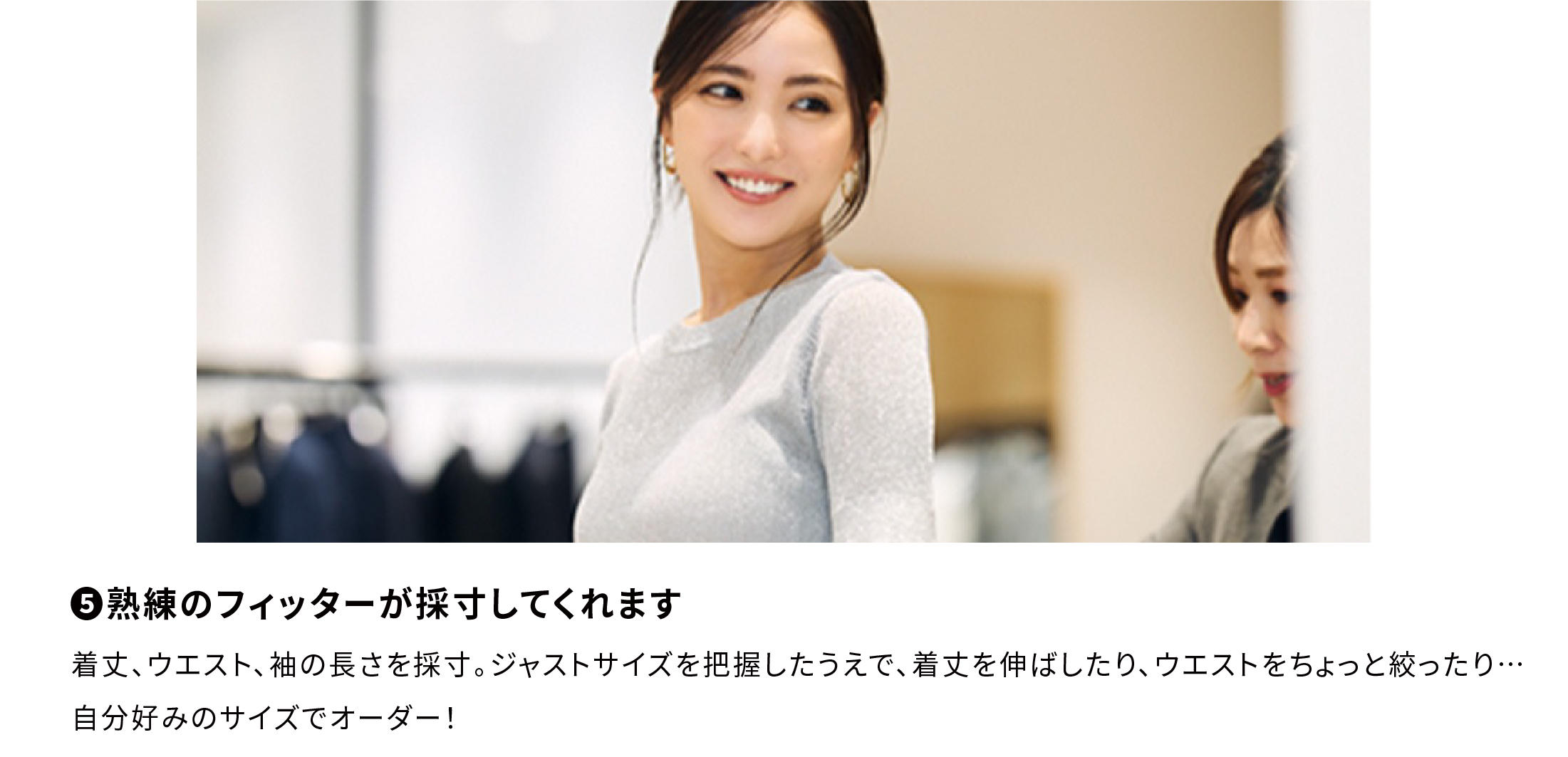 ジャストフィット=コンパクトにぴったり、ということではなく、着丈を長くしたり、少し袖を伸ばしたり…、微差にこだわって自分好みのサイズ感を楽しめるのがオーダーメイドにしかできないところ!