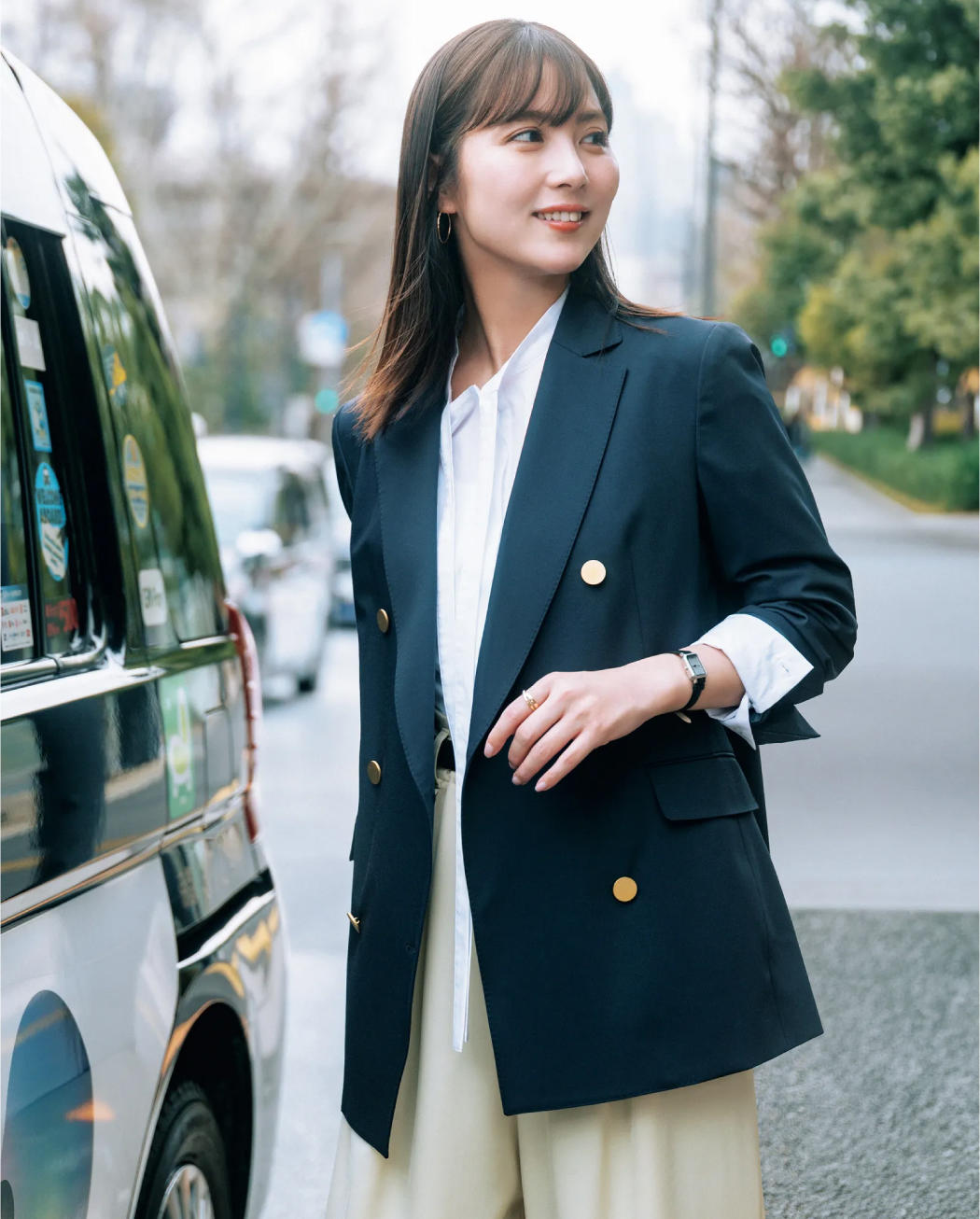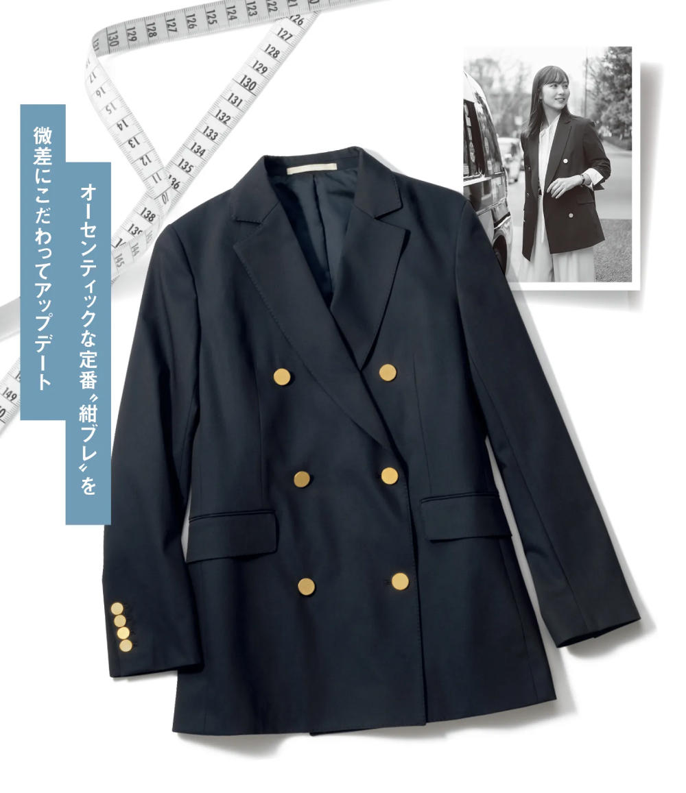 朝から外回りの1日、きちんと感とストレスフリーな着心地両得の紺ブレが相棒。ネイビーの色味、ステッチ…、「王道」だからこそ細部までこだわった一着は、クラシックでいて新しさも感じるお気に入りに。大事なプレゼン、ミーティングも私らしく。ポジティブに!