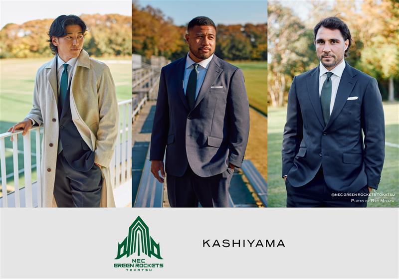 「NEC グリーンロケッツ東葛」の" ラグビーを通じて、より良い社会づくりに貢献し、チームに関わるすべての皆さまに愛され、必要とされる存在になる" という理念に共感し、2024-25 シーズンからオフィシャルサプライヤー契約を締結しました。 選手・コーチ・チーム関係者が試合移動時や公式行事の際に着用するオフィシャルスーツを提供し、チームの活躍を全力でサポートしていきます。